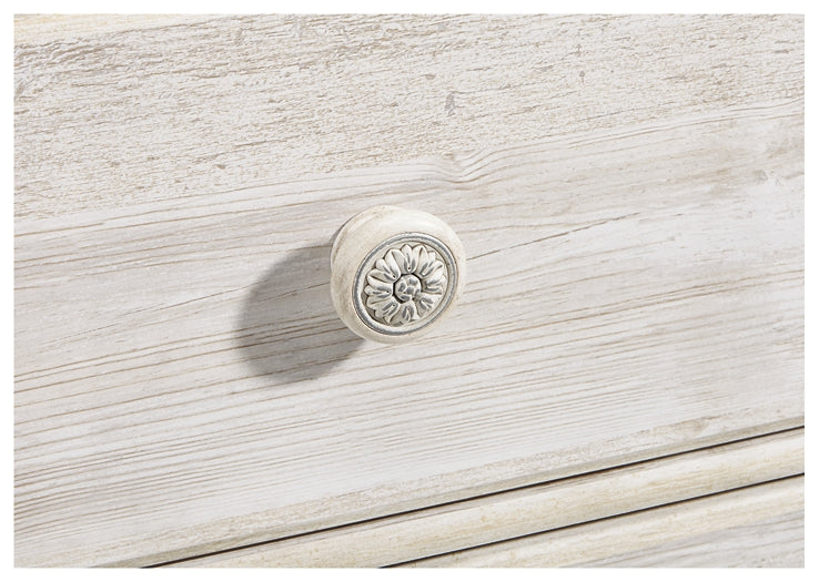 | Details | B181B10: Includes headboard, footboard and rails, Made of engineered wood (MDF/particleboard) and decorative laminate, Whitewash replicated worn through paint with authentic touch, Headboard with adjustable height, Mattress not included, sold separately, Foundation/box spring required, sold separately, Assembly required, Bed is compatible with an adjustable base, B181B8: Dresser with mirror, Made of engineered wood (MDF/particleboard) and decorative laminate, Whitewash replicated worn through paint with authentic touch, Hardware features a worn-through painted effect, 6 smooth-gliding drawers with faux laminate lining, Mirror attaches to back of dresser, Assembly required, B181-48: Made of engineered wood (MDF/particleboard) and decorative laminate, Whitewash replicated worn through paint with authentic touch, 5 smooth-gliding drawers with faux laminate lining, Slider door revealing open storage with 3 adjustable shelves, Safety is a top priority, clothing storage units are designed to meet the most current standard for stability, ASTM F 2057 (ASTM International), Drawers extend out to accommodate maximum access to drawer interior while maintaining safety, B181-92: Made of engineered wood (MDF/particleboard) and decorative laminate, Whitewash replicated worn through paint with authentic touch, 2 smooth-gliding drawers with faux laminate lining, 2 slim-profile USB charging ports, Power cord included; UL Listed, Minor assembly required, | |