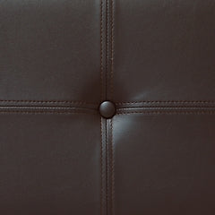 | Details | Made with sturdy solid wood frame, Gently distressed and burnished dark brown finish, Faux leather upholstery, Cushioned seat, Assembly required | |